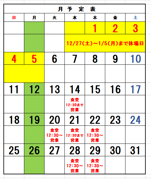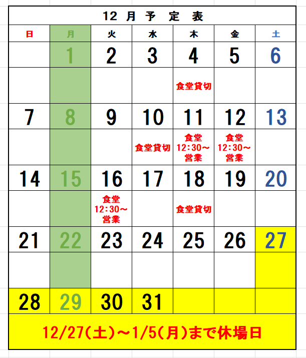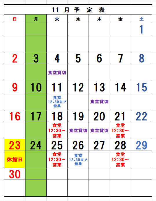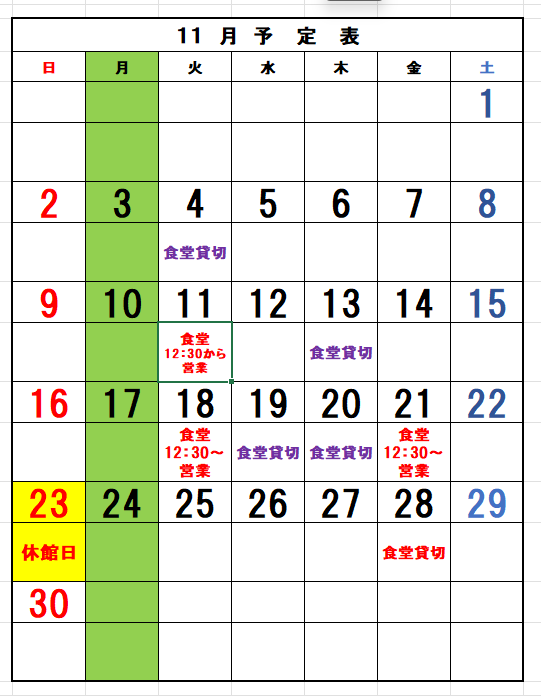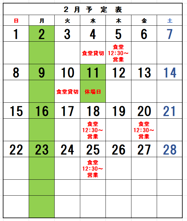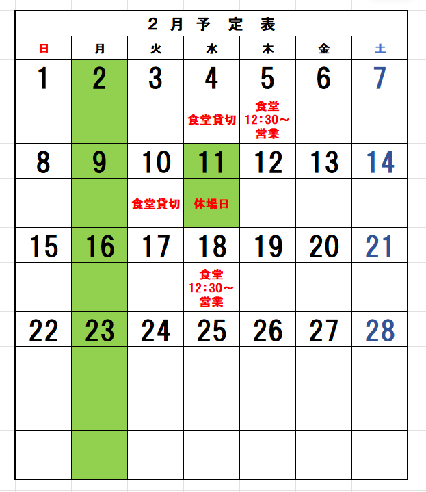 尚、食堂の使用状況によって貸切の変更がありますのでご来場いただく前に電話にてご確認願います。